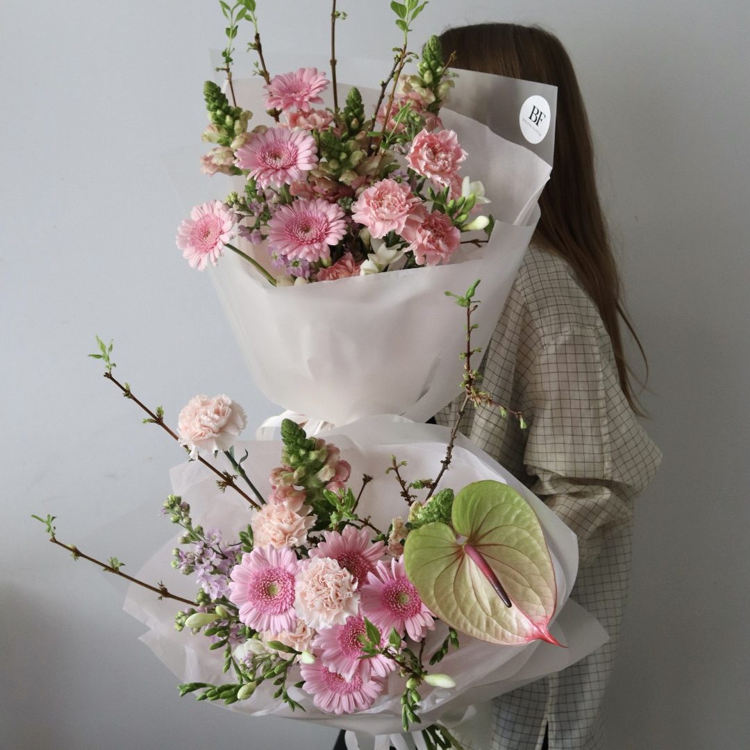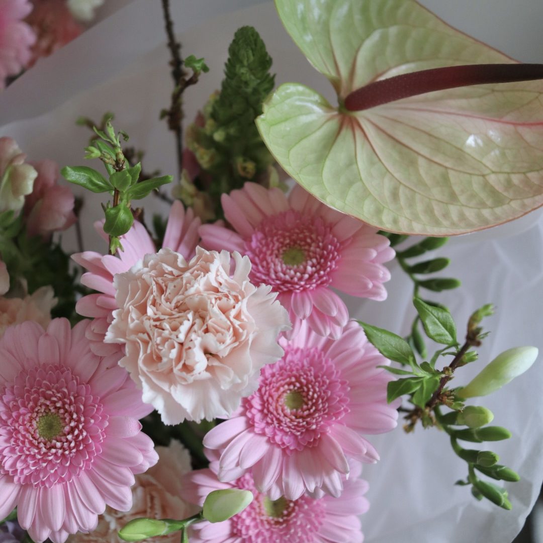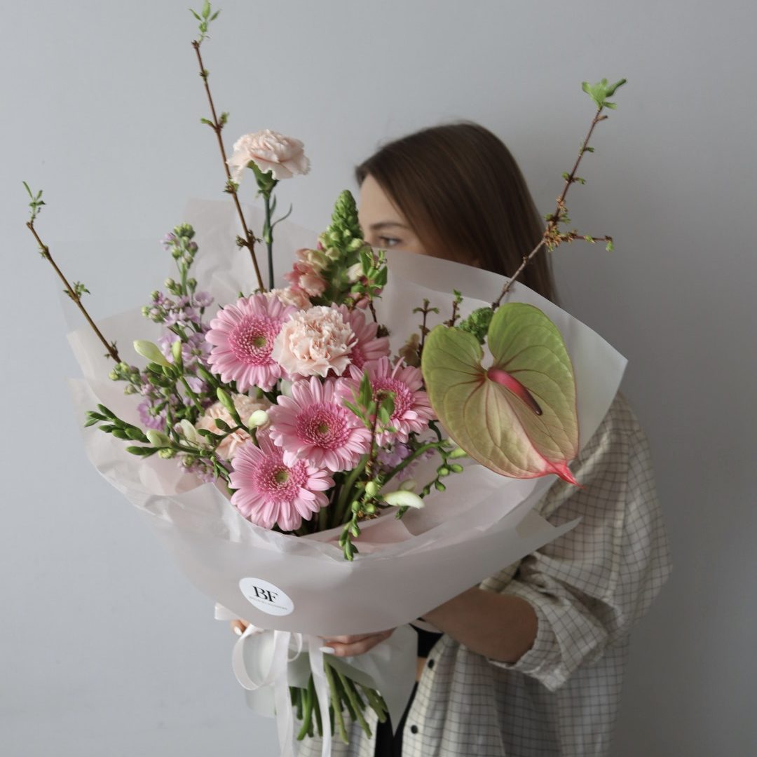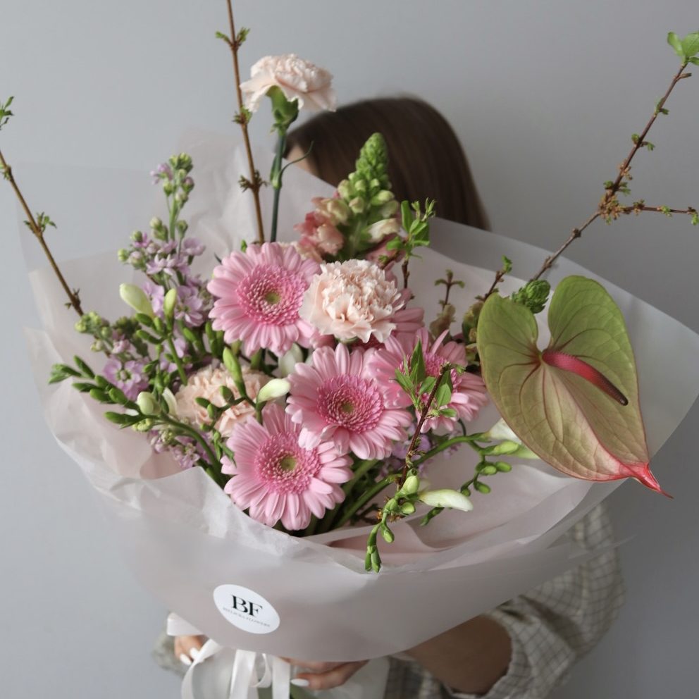 Skład: gerbery, gozdziki, lwia paszcza, anturium, sezonowe dodatki.