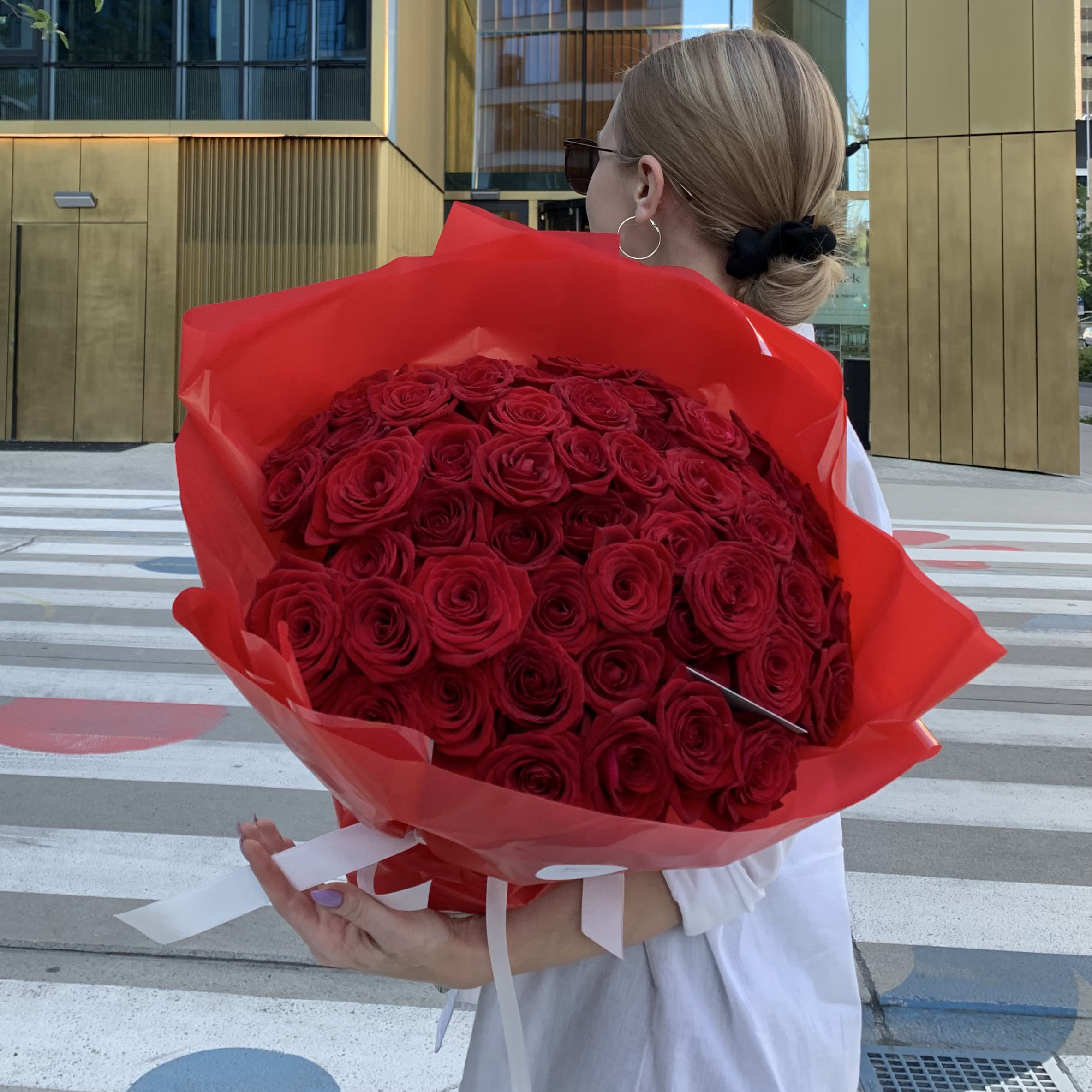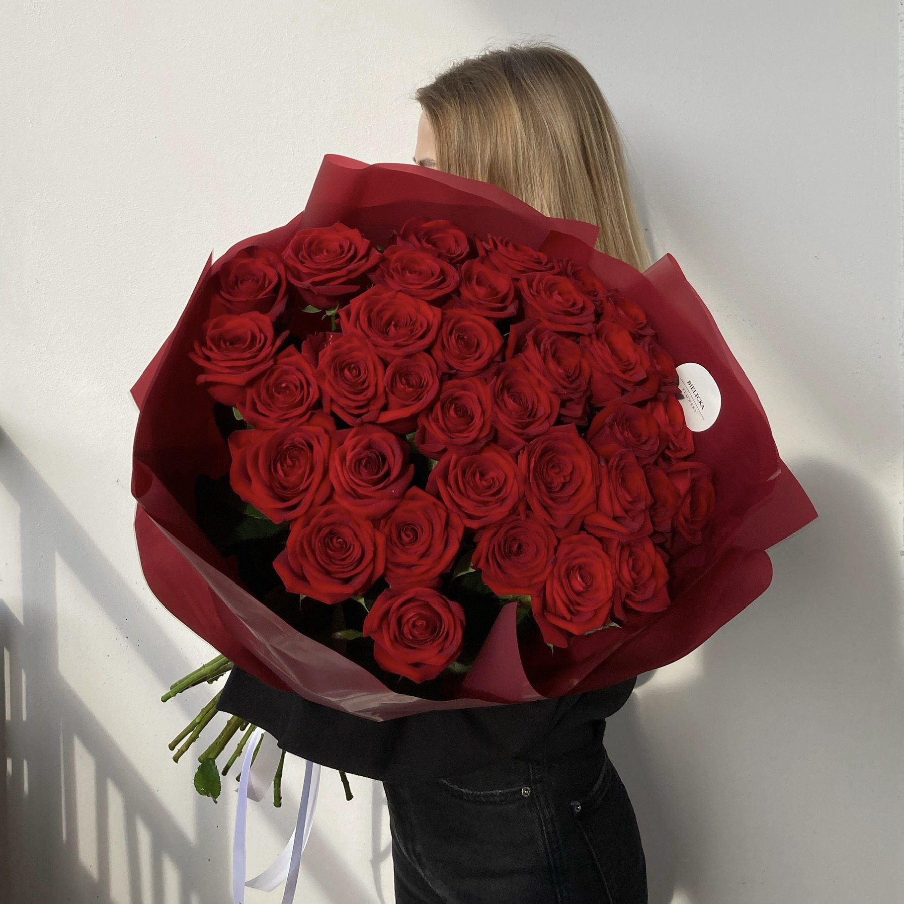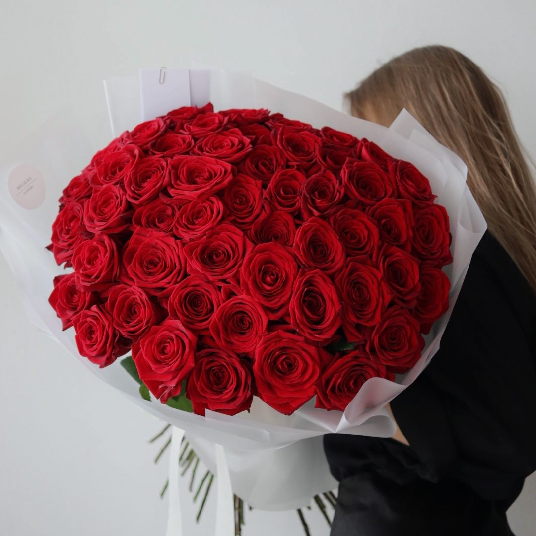 Długość około 60-70 cm. Na zdjęciu bukiet z 50 róż.
